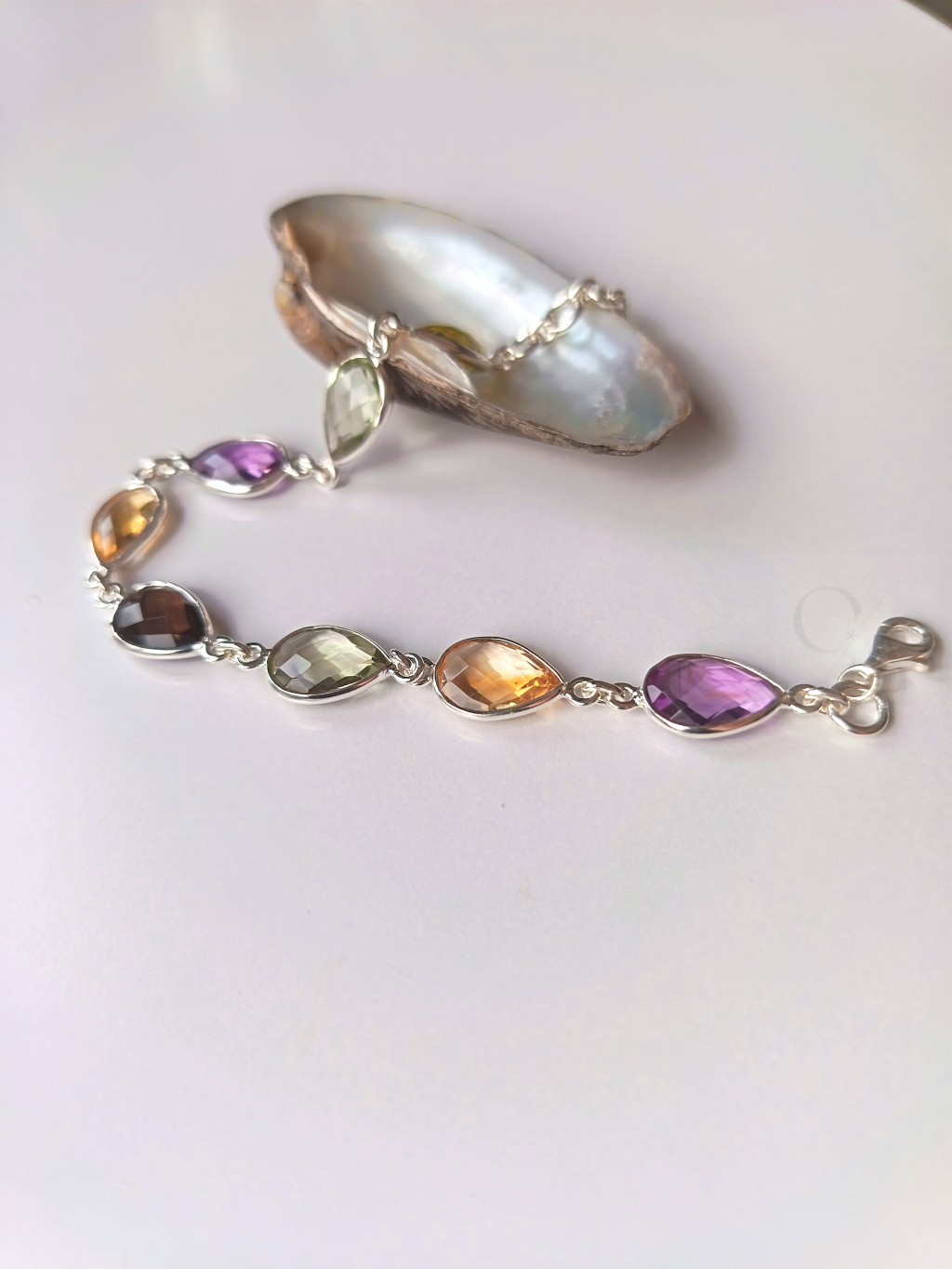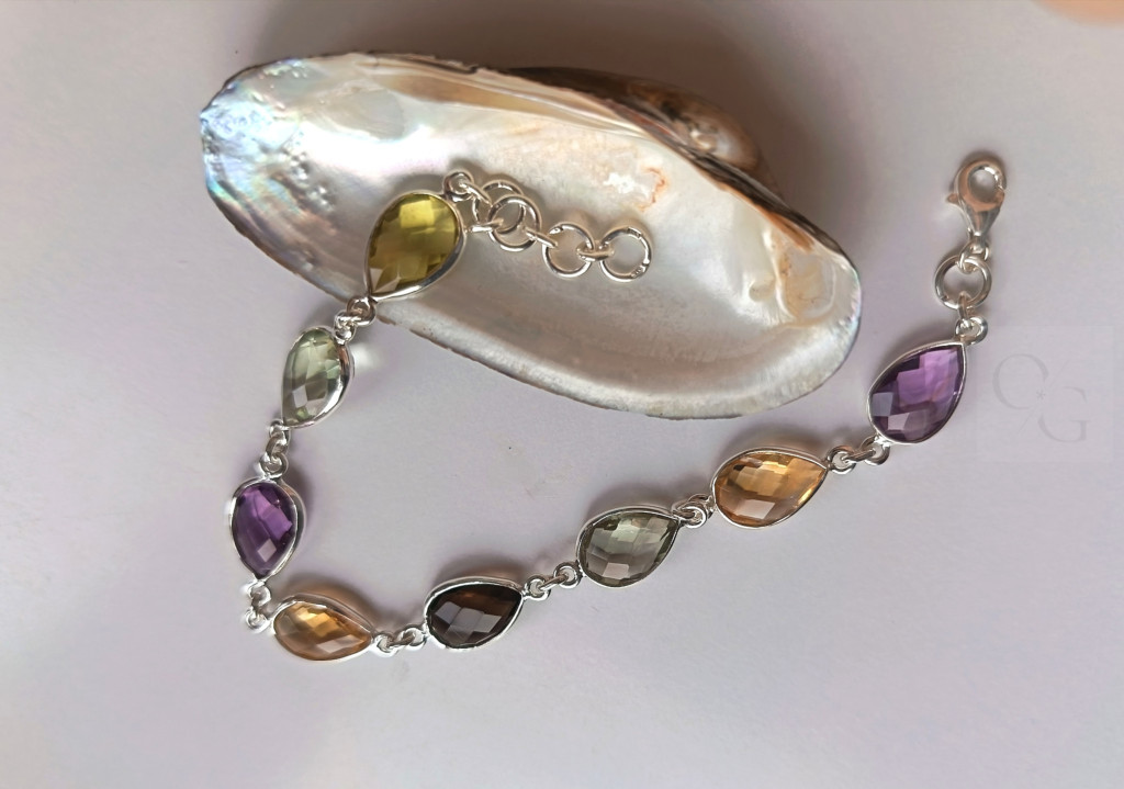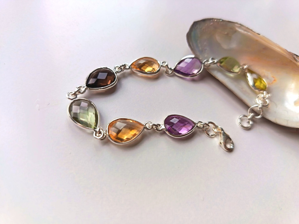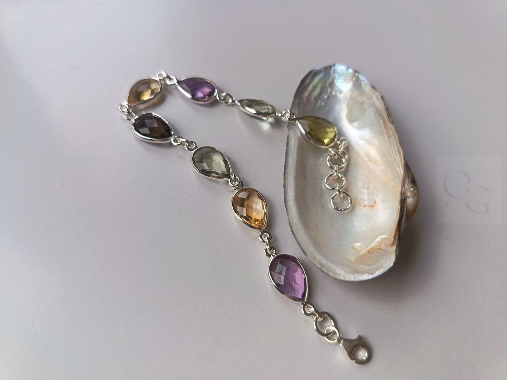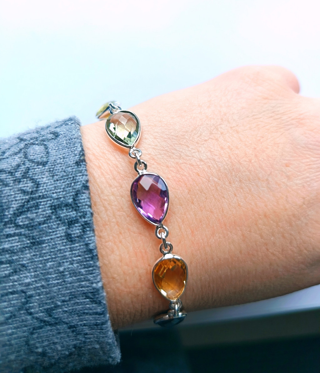 SEO kulcsszavak: drágakő karkötő, csepp alakú ékszer, ametiszt karkötő, zöld ametiszt ékszer, citrin karkötő, füstkvarc ékszer, 925 ezüst karkötő, elegáns női ékszer, prémium drágakő karkötő, drágakő szett fülbevalóval.