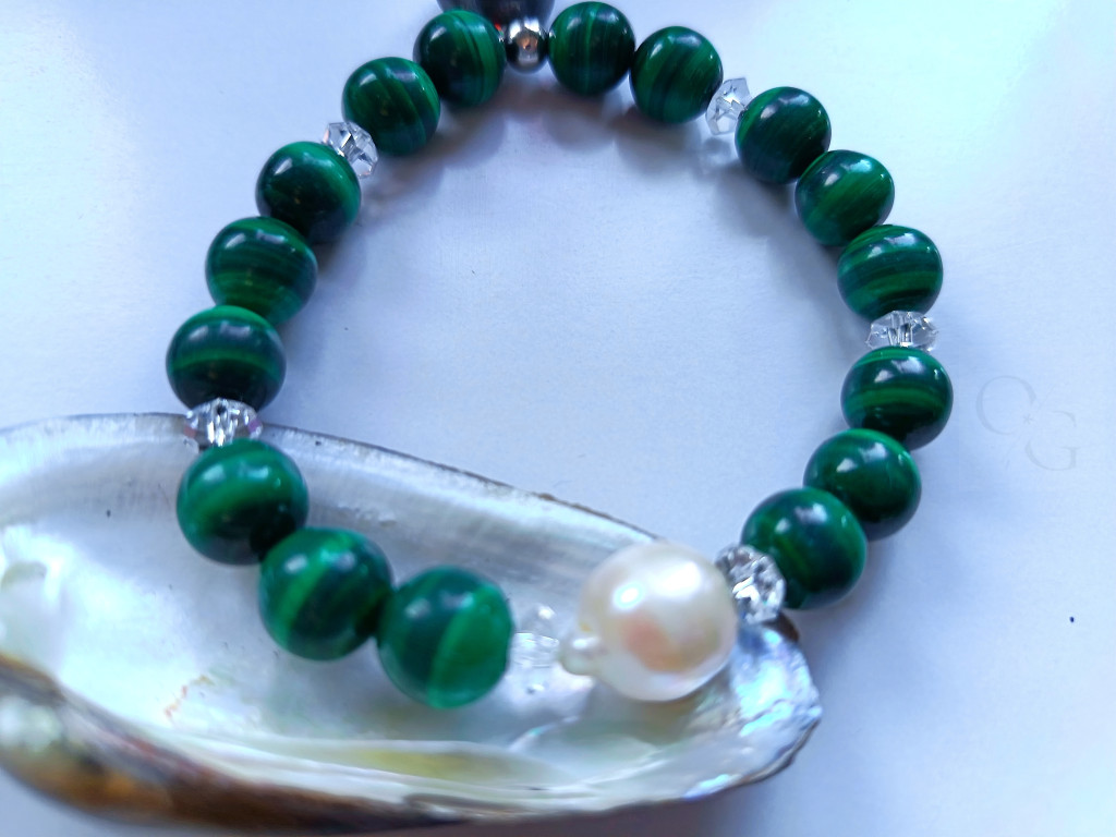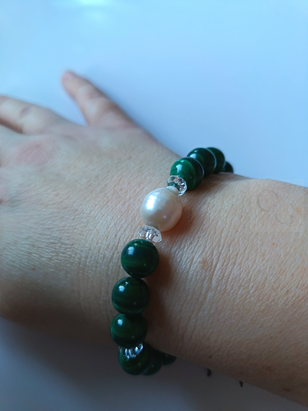 Ez a lenyűgöző malachit karkötő igazi gyöngyszem azok számára, akik értékelik a természet szépségét és az zereket. A zöld malachit kő káprázatos árnyalata mintázataival igazi műalkotás, amely nemcsak szépséget, hanem védelmet és harmóniát is hoz viselője életébe.
