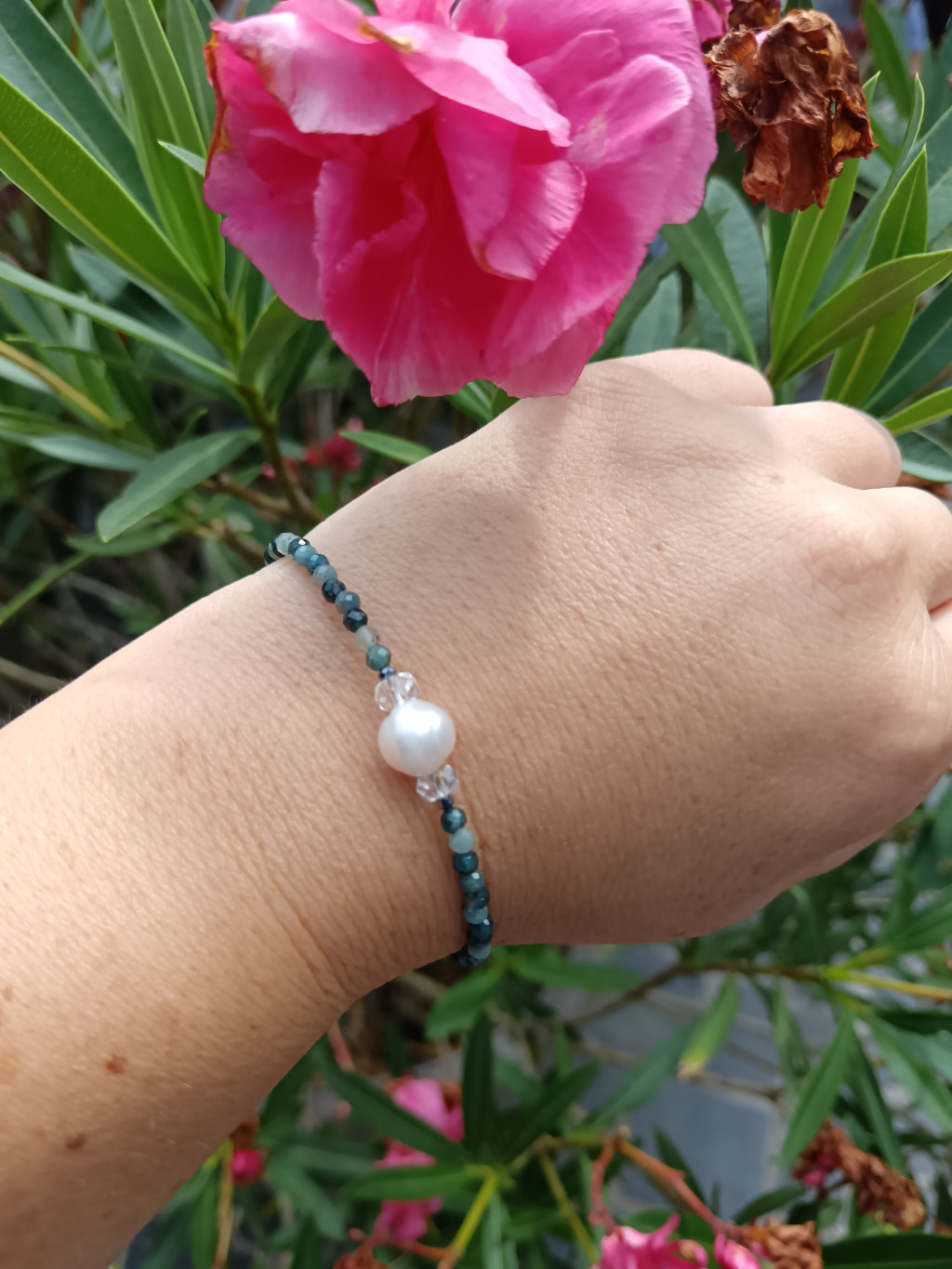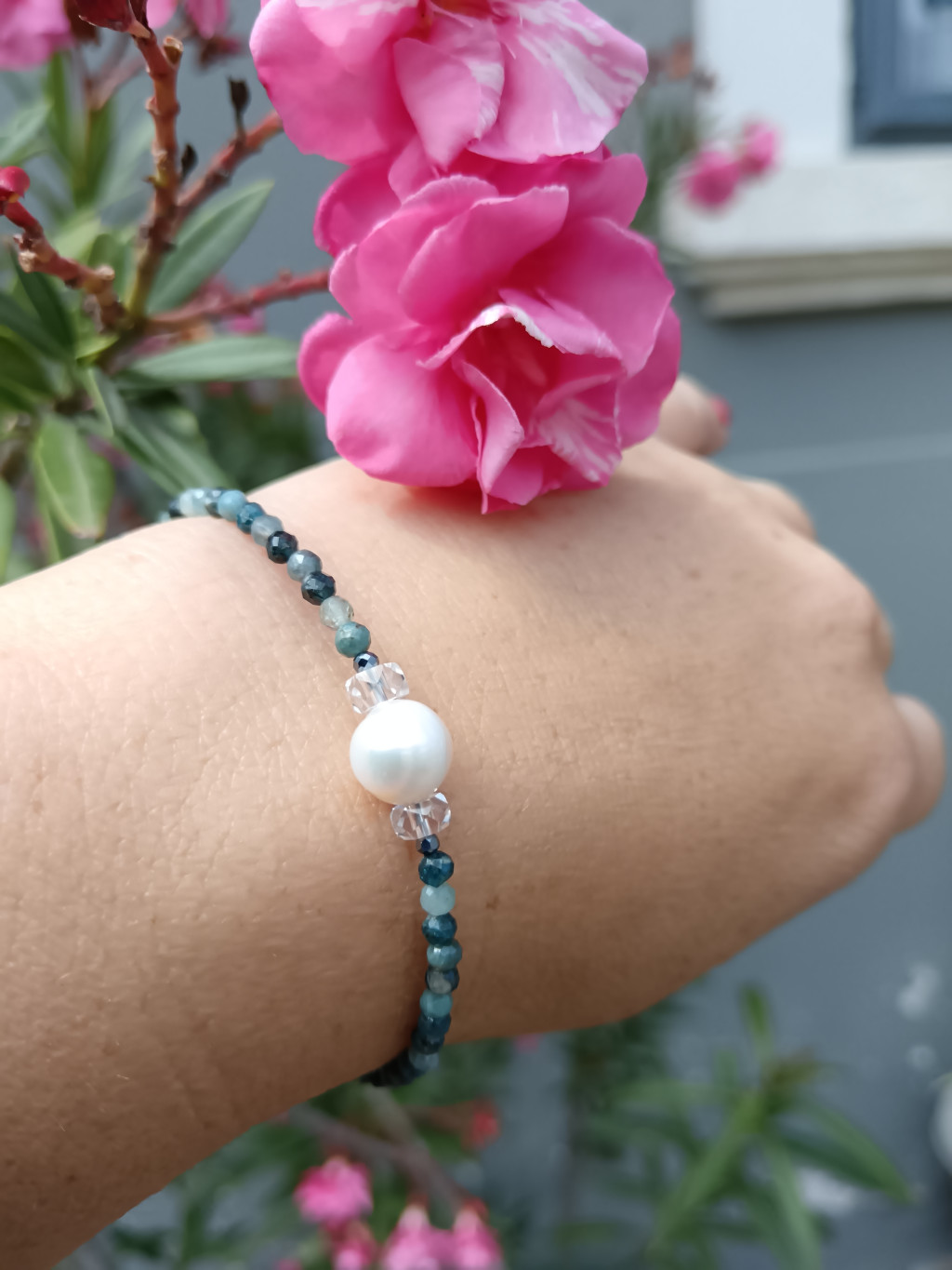 **Kék Turmalin Karkötő, igazgyönggyel**