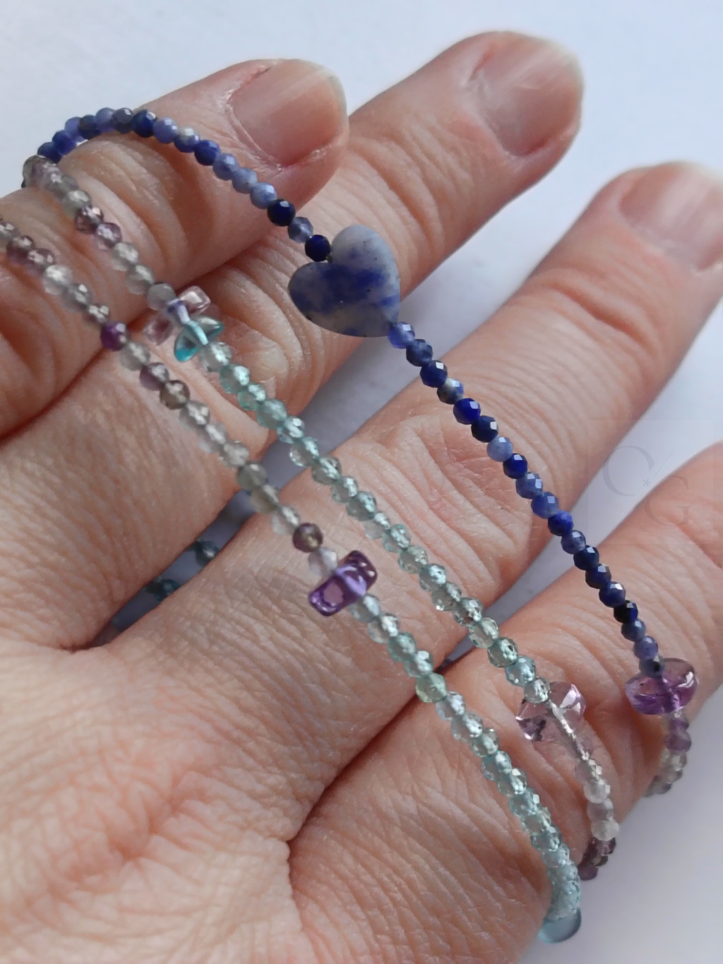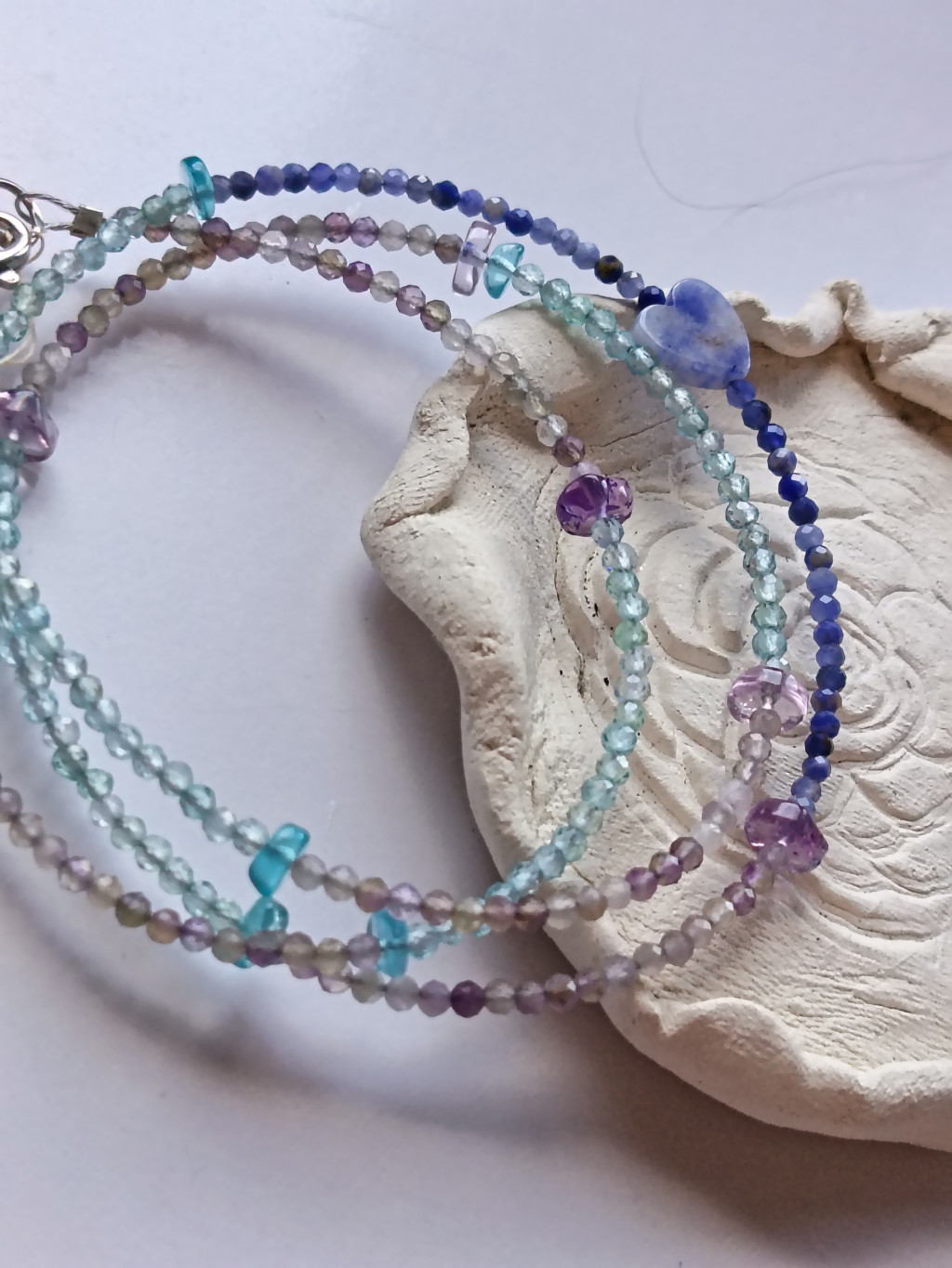 Lélekvirág karkötő kollekció, Lélekhajnal, 3 sor virága, szodalit szív,