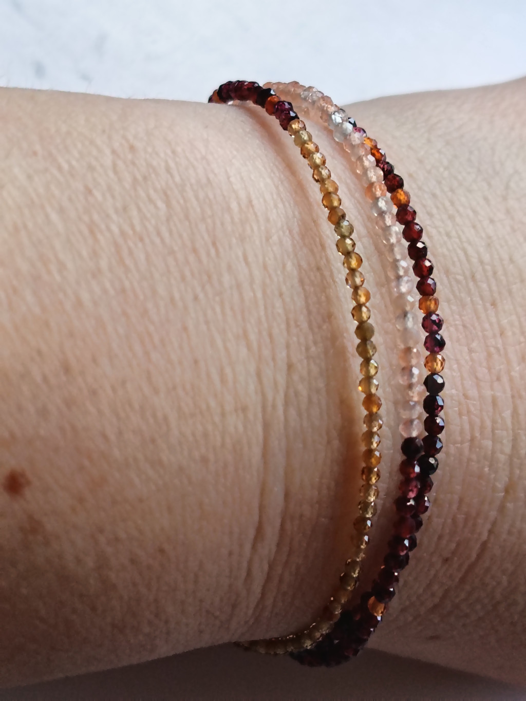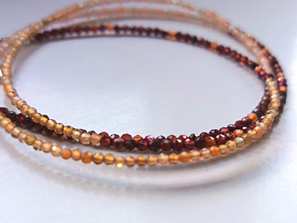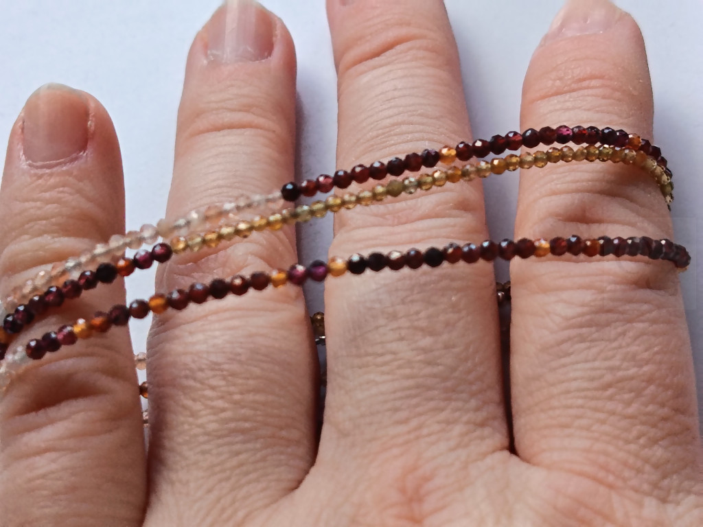 Lélekvirág karkötő kollekció, Lélekfény, 3 sor virága, hessonite gránát,