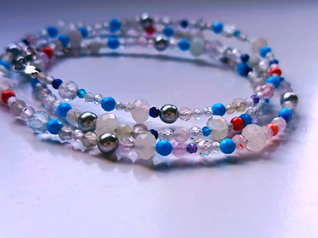 HOLDKŐ • HEGYIKRISTÁLY • VILÁGOS JADE • KAGYLÓGYÖNGY • KORALL • TÜRKENIT • EZÜST • 3 SOR