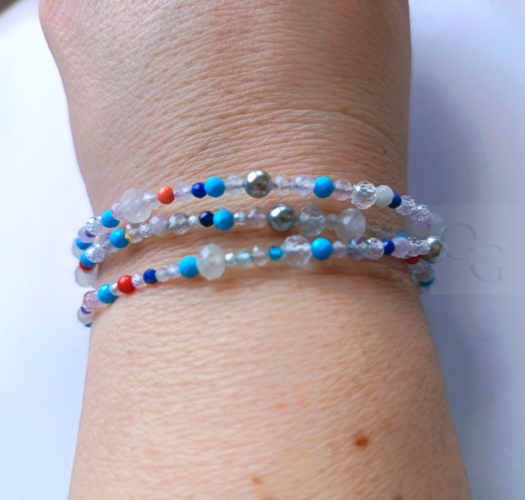 Lélekvirág karkötő kollekció, Léleknyár, 3 sor virága, holdkő, hegyikristály,