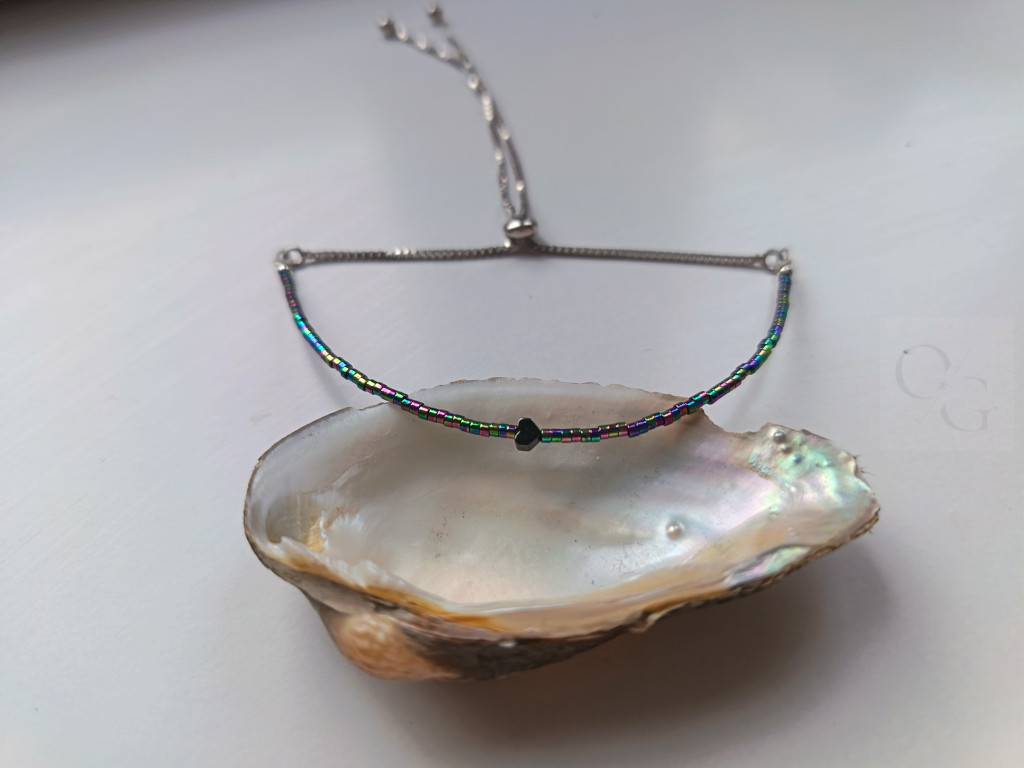 Ez a hematit karkötő egy igazi ékszerdarab, amely a letisztult eleganciát és a kifinomult részletek harmóniáját ötvözi. A karkötő ezüst színű, mely klasszikus és időtálló megjelenést kölcsönöz, ugyanakkor rendkívül praktikus, mivel állítható méretű, így minden csuklóra tökéletesen illeszkedik. A kialakítás gondosan megtervezett, hogy könnyen fel- és levétel legyen, miközben megőrzi stabilitását és eleganciáját.