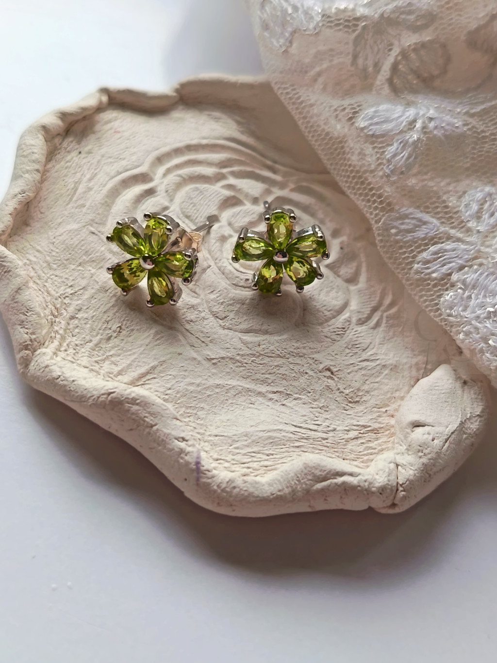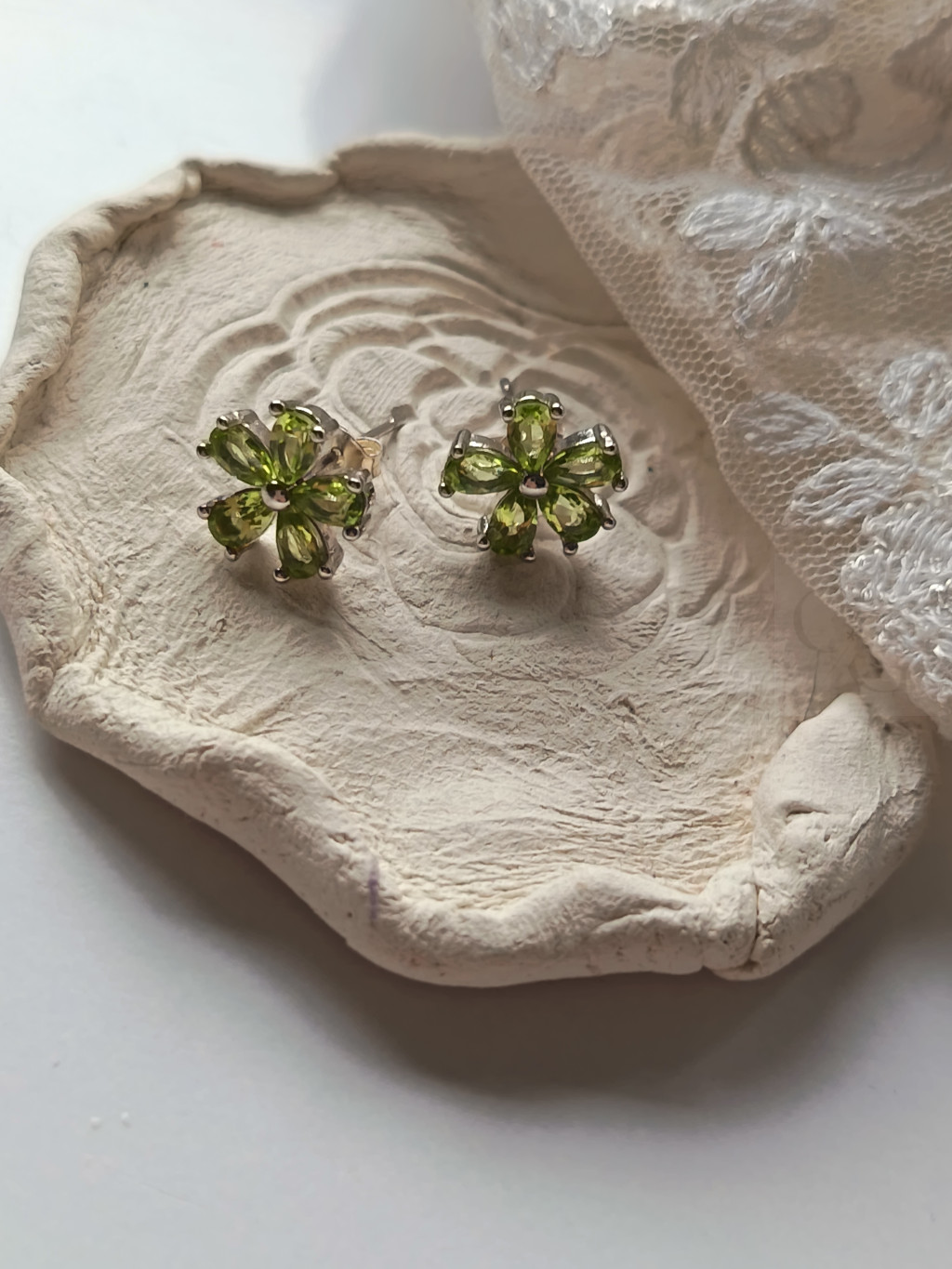 Fedezd fel ezt a csodás olivin fülbevalót, mely egy igazi ékszerkincs a természet szépségéből! Ez a bedugós, virág alakú ezüst fülbevaló egyedi kuriózum, mely minden összhangban van a letisztult eleganciával és a természet inspirálta formákkal.