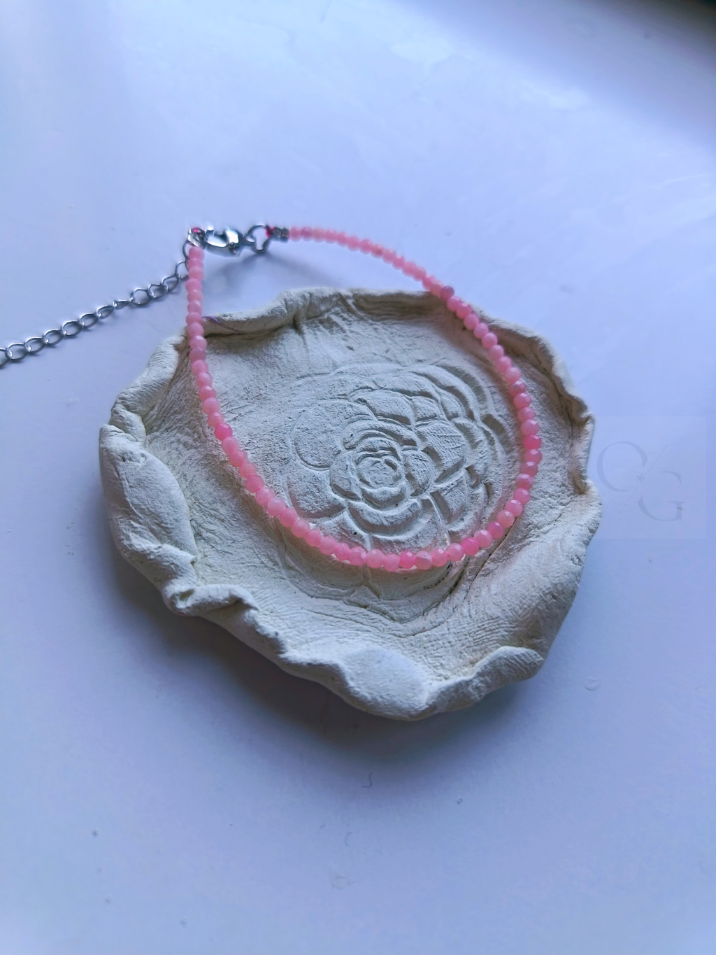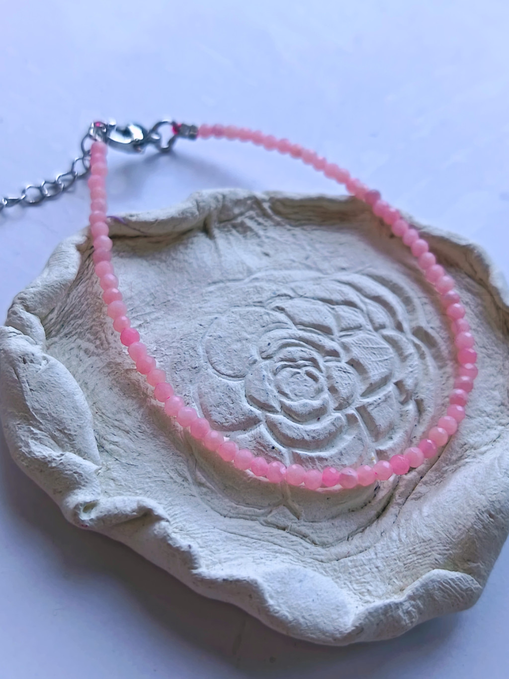 Ez a karkötő nemcsak divatos kiegészítő, hanem egy érzelmi támogatást nyújtó energiaforrás is, amely segít megőrizni a belső harmóniát és a pozitív kisugárzást. Legyen szó akár napi viseletről, akár különleges alkalomról, a rózsakvarc energiája mindig ott lesz veled, erősítve a szeretetet és a nyugalmat.
