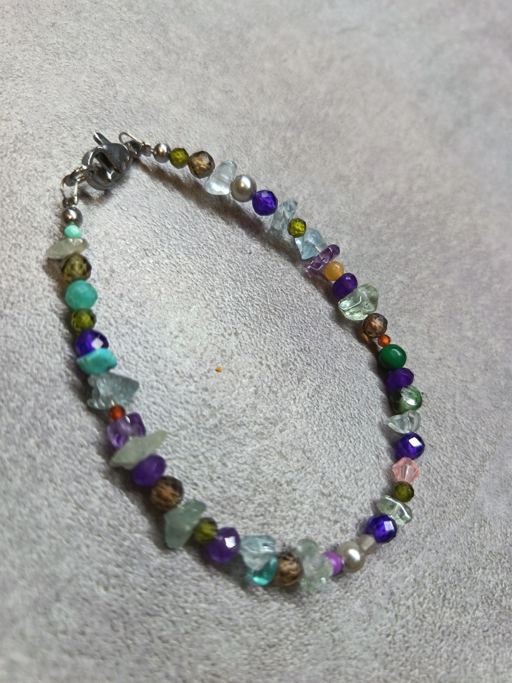 Szivárvány kőválogatás karkötő – orvosi fém szerelékkel