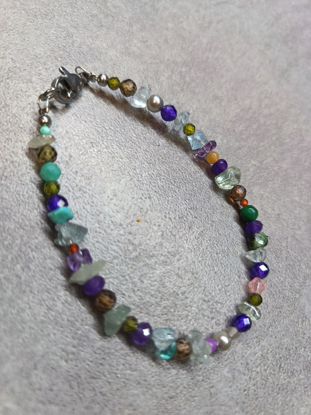 Ez a különleges karkötő egy válogatott szivárvány ásványkollekció, amely a természet sokszínűségét és egyediségét viszi a mindennapokba. A kövek eltérő formái játékos és harmonikus látványt kölcsönöznek az ékszernek, miközben minden darab a saját karakterét hordozza.