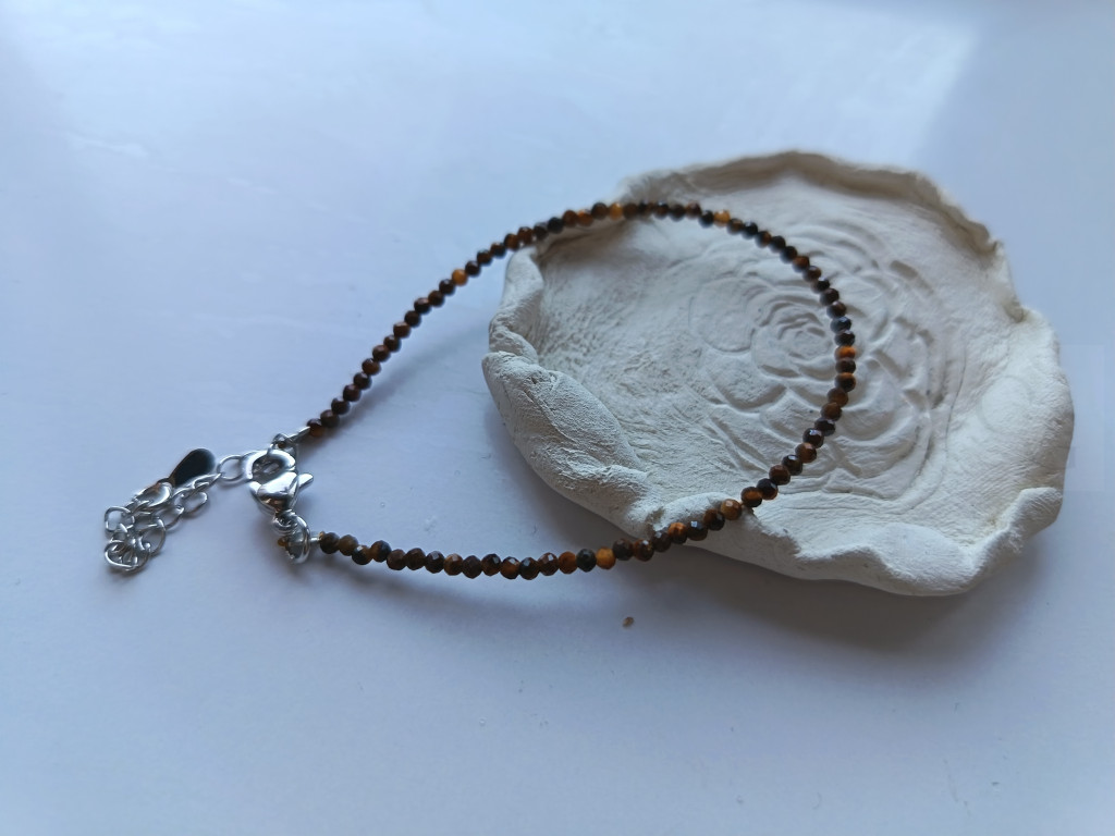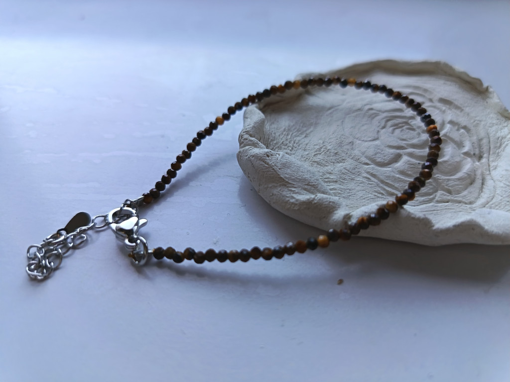 Ez a lenyűgöző kapcsolós karkötő igazi hatással van a megjelenésedre és a lelkivilágodra. Az apró, 2,5 mm-es tigrisszem kövek energiával töltik meg a viselőjüket, hiszen a tigrisszem a bátorság, az erő és a személyes hatékonyság szimbóluma. A sárgás-barnás árnyalatok mélyen hatnak a testi és lelki harmóniára, segítve a fókuszálást és az önbizalom növelését.