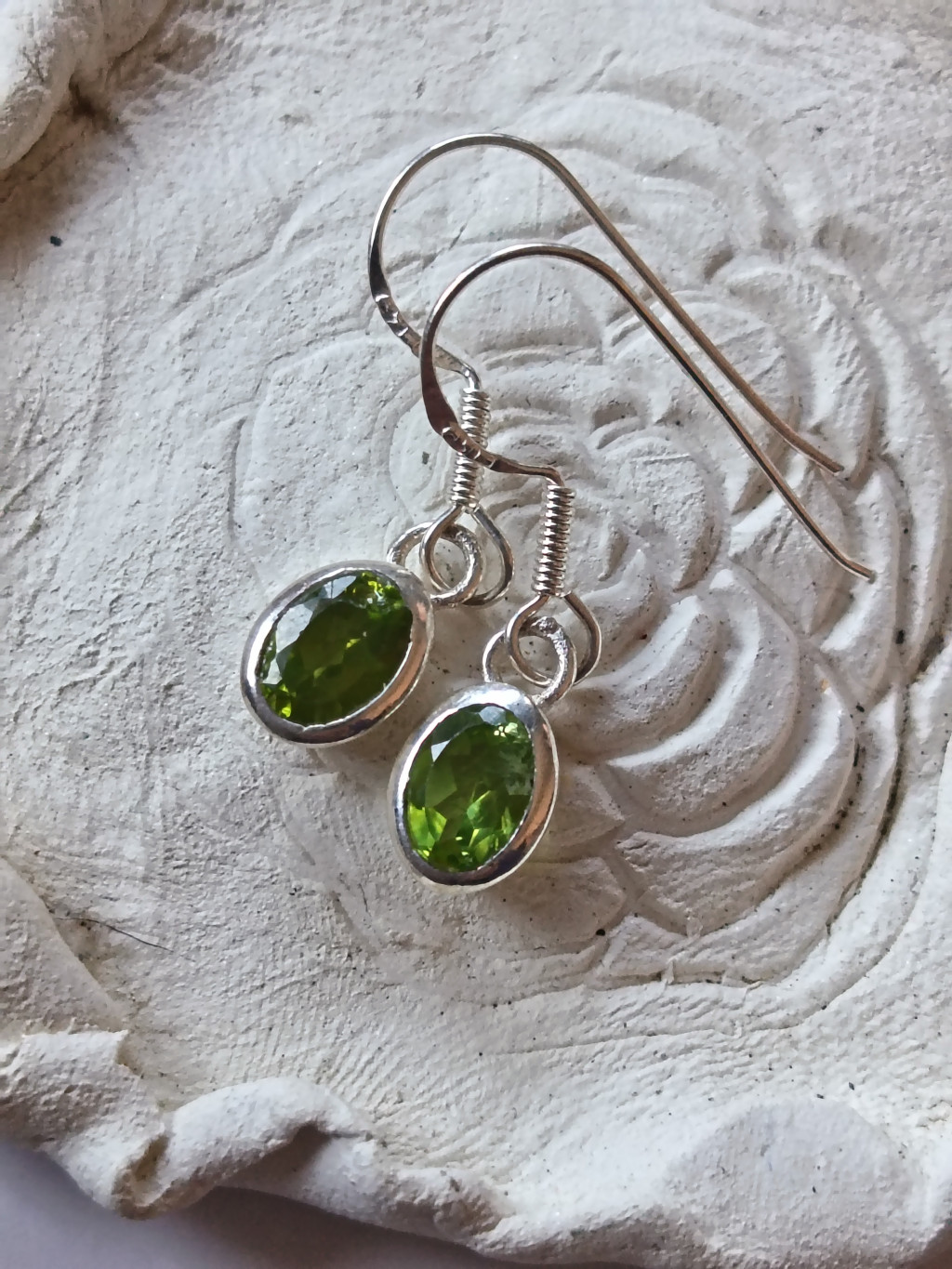 Olivin extra, ezüst fülbevaló