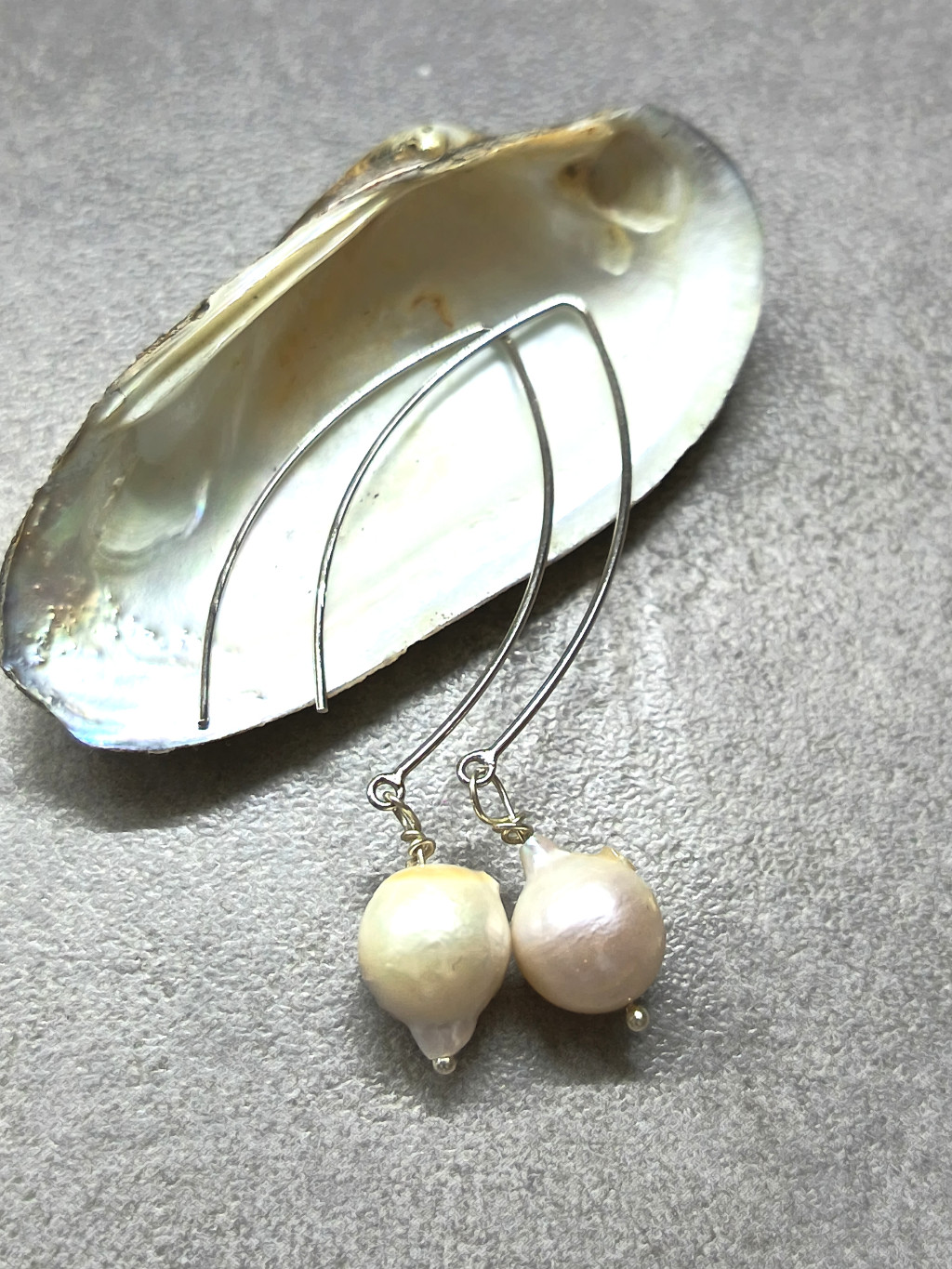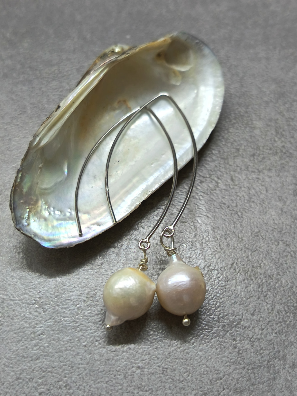 A gyöngyökhöz illeszkedő, 4 cm hosszú V-alakú hajlított ezüst akasztó modern és letisztult vonalvezetésével harmonizál a gyöngy finom eleganciájával. Ez a design nemcsak stílusos megjelenést kölcsönöz, hanem könnyű viselhetőséget is biztosít, így egész nap kényelmesen hordható. Az ezüst anyag hűvös, fénylő felülete kiváló minőséget és tartósságot sugall, miközben könnyen kombinálható más ékszerekkel és ruházattal is.