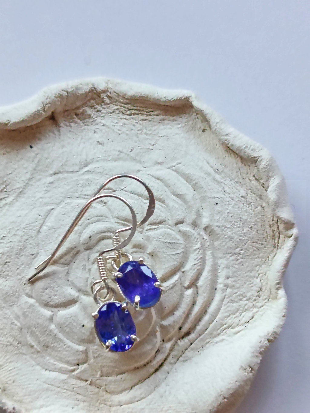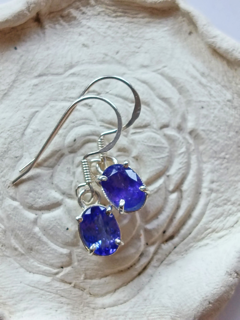 Termékleírás ezüst fülbevaló akasztós, tanzanit drágakővel: