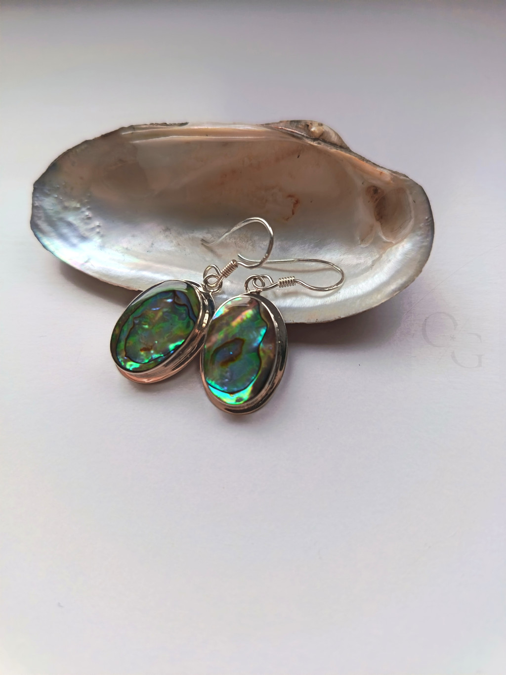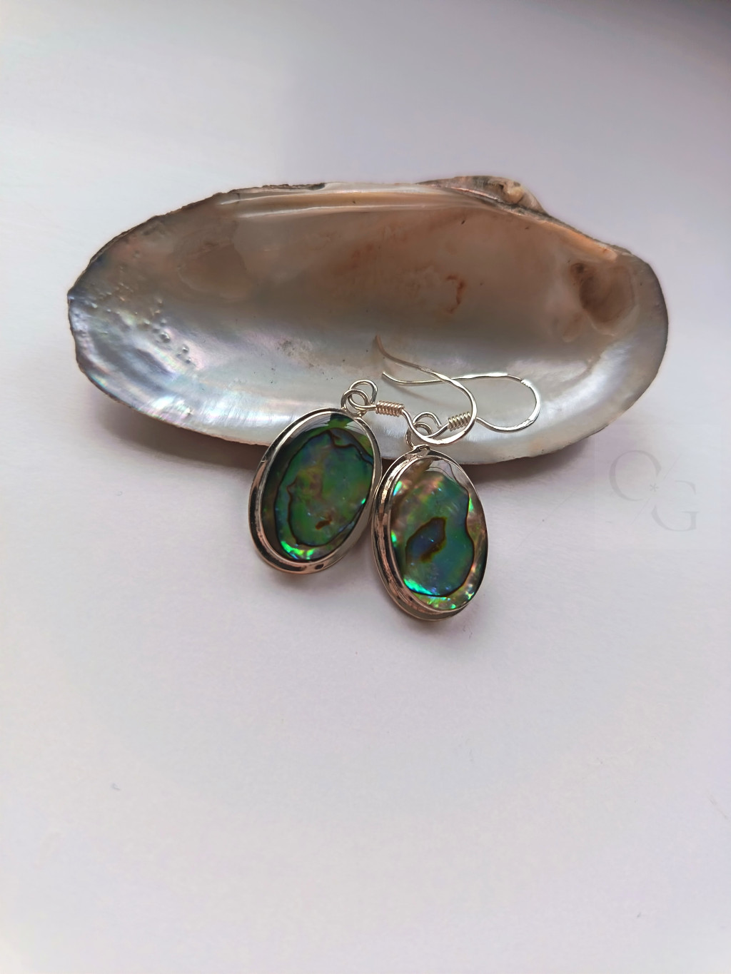 Nacre Paon – pávakagyló ovális alakú ezüst fülbevaló