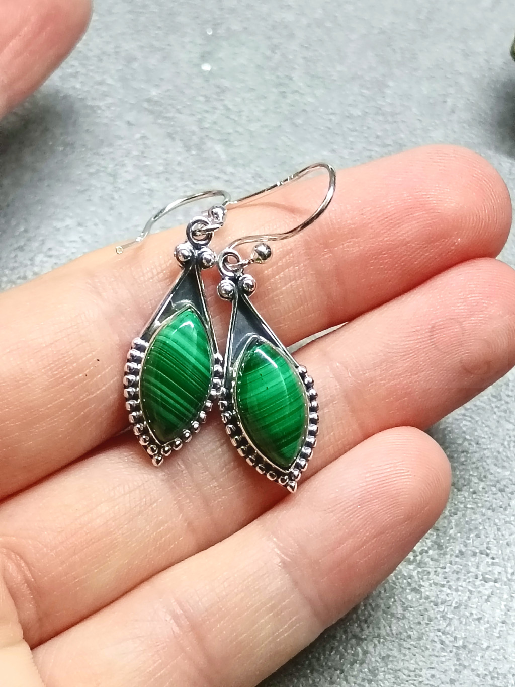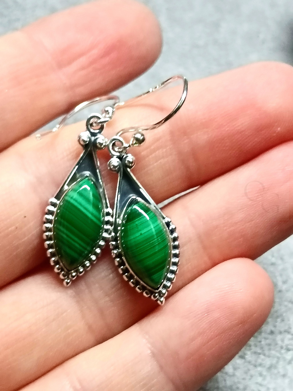 Ez az elegáns, ovális (csepp alakú) malachit fülbevaló tökéletes példája a természetes szépségnek és az időtlen eleganciának. Az antikolt ezüst keret finoman keretezi a mélyzöld, egyedi mintázatú malachit ásványt, melynek gazdag színei és mintázatai minden viseletet különlegessé tesznek. A minőségi kivitel biztosítja a tartósságot és a kényelmet, miközben az ásvány spirituális energiával is feltölti viselőjét. Ez a kollekció darab azoknak szól, akik értékelik a természetes kövek varázsát, a vintage stílust és az egyedi ékszereket, melyek kiemelik személyiségüket.