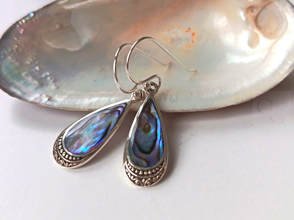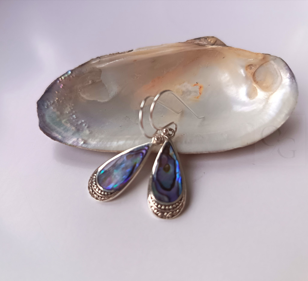 NacrePaon – pávakagyló csepp alakú ezüst fülbevaló