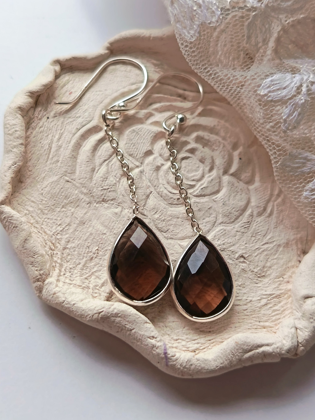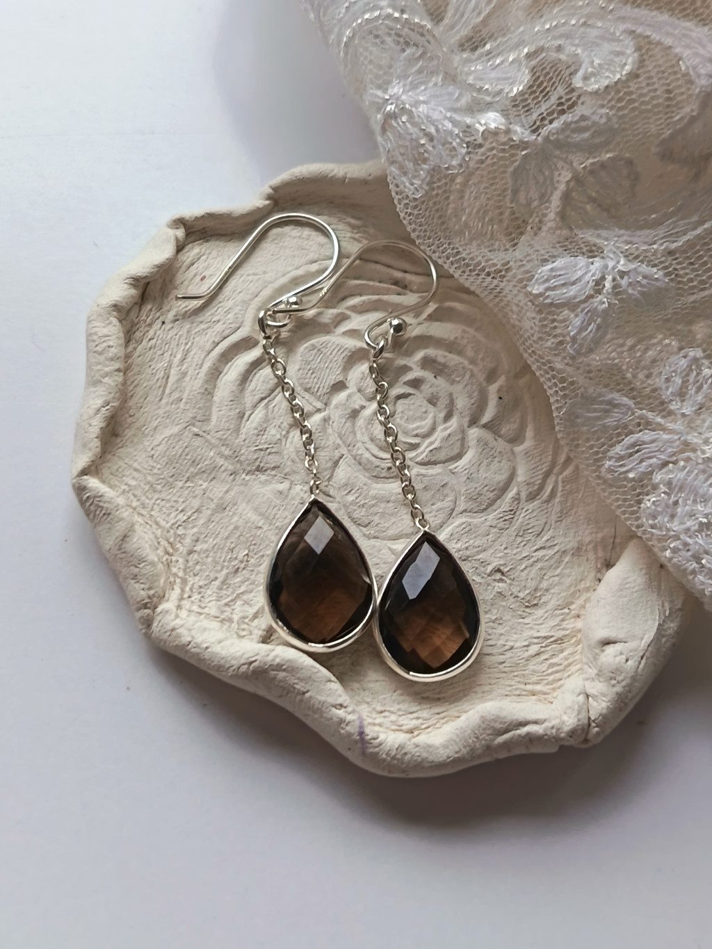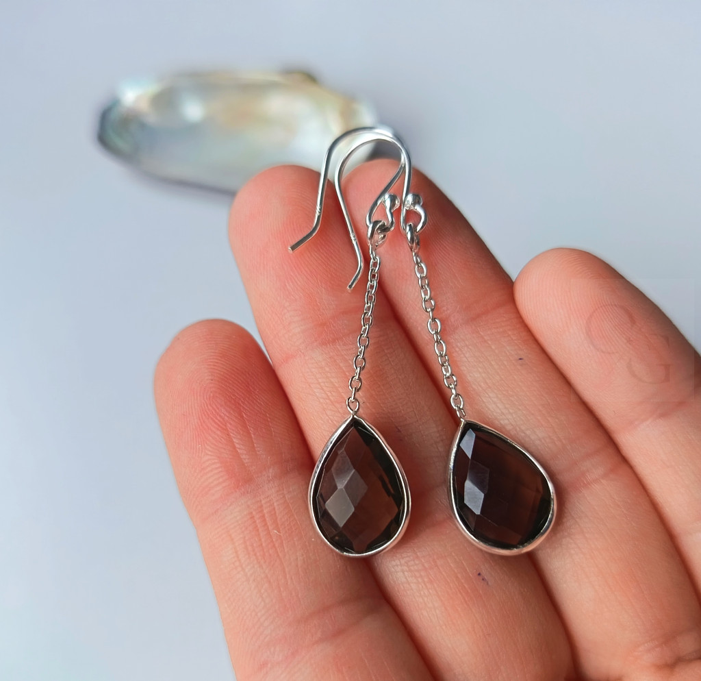 FeuilleSombre – füstkvarc csepp alakú ezüst fülbevaló
